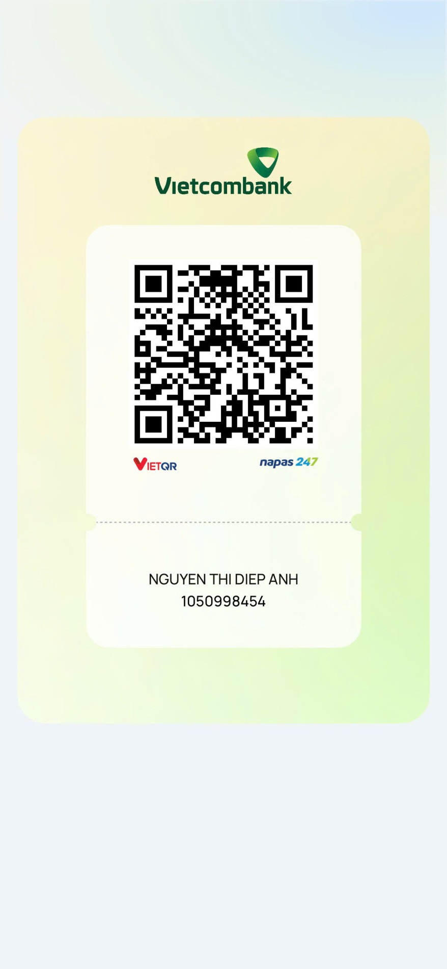 Cô dâu thuộc tuýp người hướng nội . Sở thích nấu nướng và đi du lịch cùng gia đình.